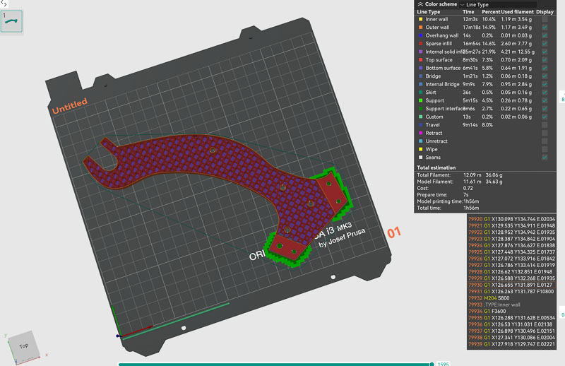 When the support was added, the piece no longer fit on the printer bed so I rotated it a little until it sat well diagonally.