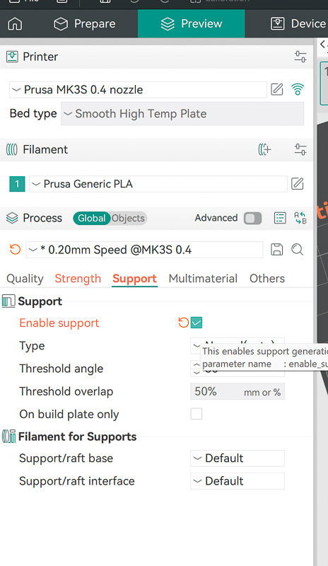 For my model I had to add support because I was getting a notice that I had cantilever pieces. So I went to the support tab and enabled support.