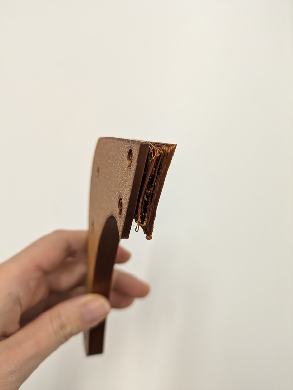 I also played with a few different patterns to see if that cut down my printing time. Ultimately I stuck with Cross Hatch, because Annie also suggested, as far as strength this pattern was diagonal which was better to support the curve in my object.