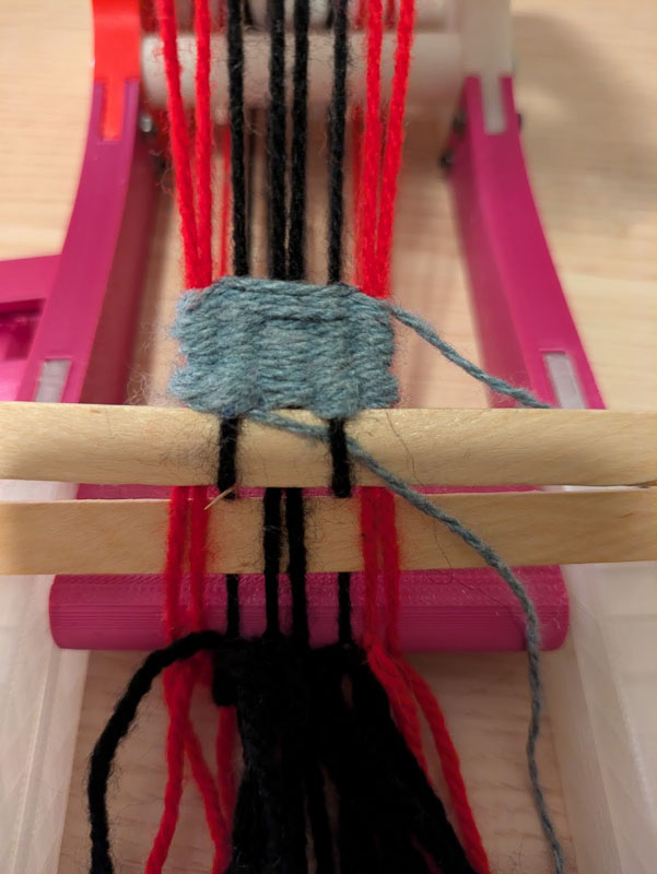 Adding threads actually didn't matter but I found the less tight I wove, the better my warp showed up, and the less dominant my weft become, so I did some variation.