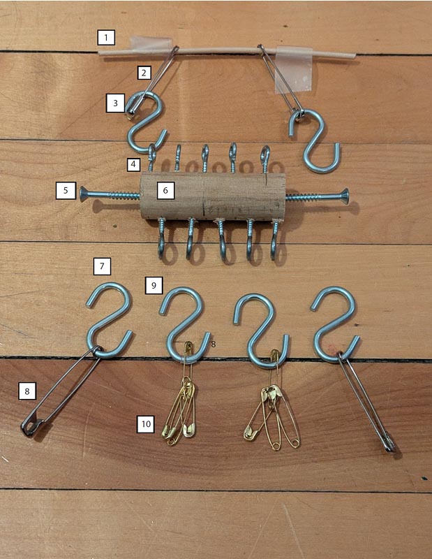 For the top threads I used s-hooks and safety pins. This way if something went awry I could simply unclip the safety pin.