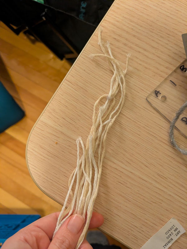 - For the white string I had to cut quite a few (24) so I was moving quickly. It's important to check every so often that your length isn't getting drastically thrown off from the original thread.