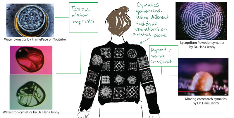 After two "false" starts, I've found a way to combine my love of organic surface pattern making with fashion centric bio-material development. By combining the two, I like that nature actually has a strong part in every step of the project. All of these are processes I want to work with down the road. This feels like the time to explore bio-materials since I have access to a lab, and capturing cymatics has long been something I've been curious to try.
