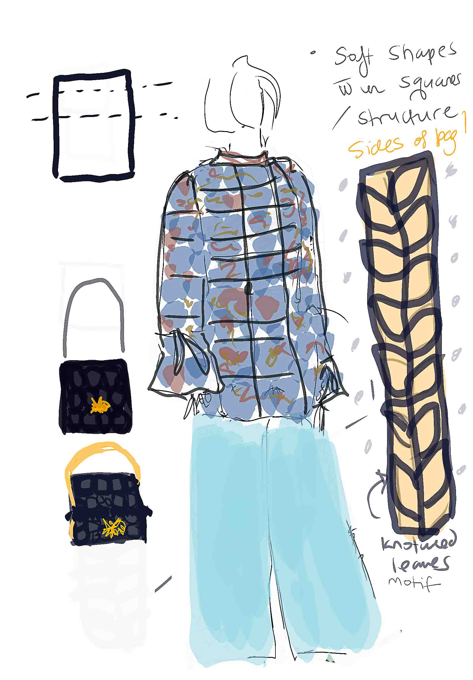 On the garment design end of things I've been trying on a lot of different cuts and patterns to see what shapes and scales I like, and how they blend together.