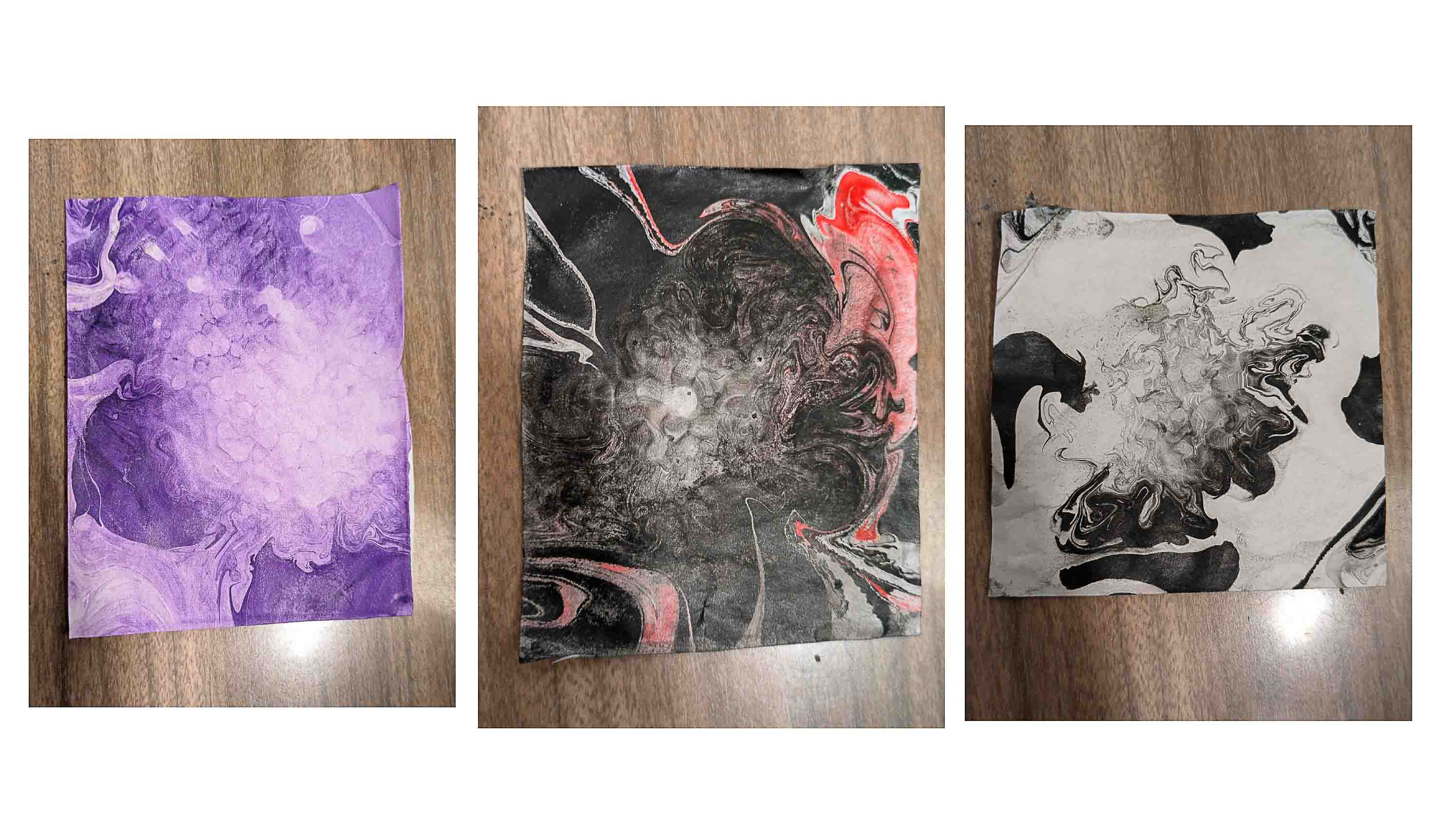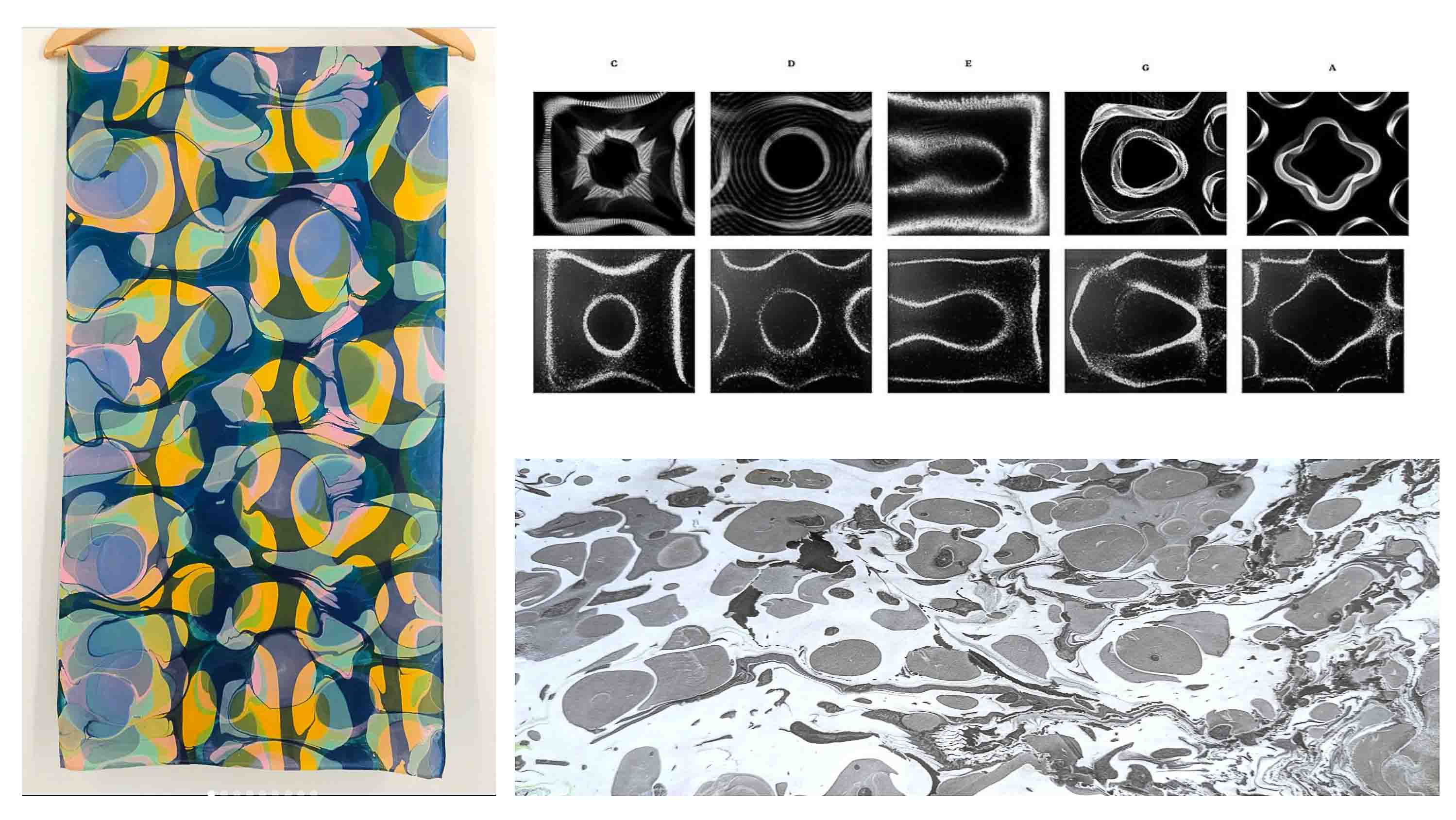 For those who are unfamiliar, Cymatics are made by sending a tone to a metal plate that transforms vibrations into visible patterns. Last year I also really fell in love with fabric marbling or ebru. It's both technical and intuitive and it's always surprising.