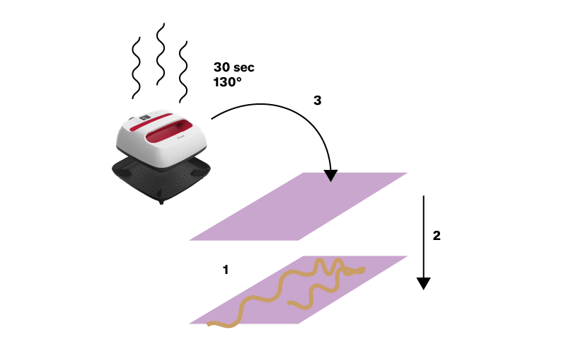 - Press with a heat press at 130°C for 30 seconds.