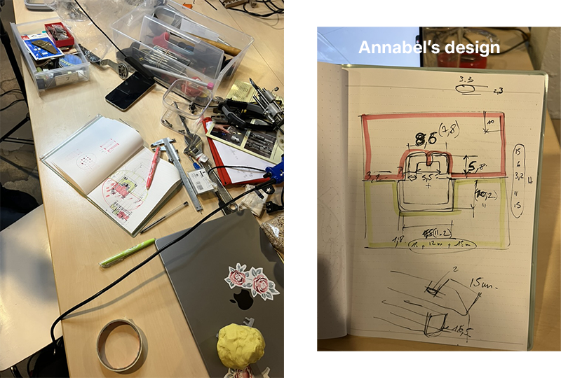 Once we got started, each of us began developing an idea: Annabel worked on the piece that will connect the gun to the needles, and Carmen, using Annabel’s concept, decided to create it not with 3D printing but with laser cutting to explore another manufacturing method. As for me, I’m working on the attachment that will hold the needles. I invite you to check the girls’ documentation to learn more about their design steps.