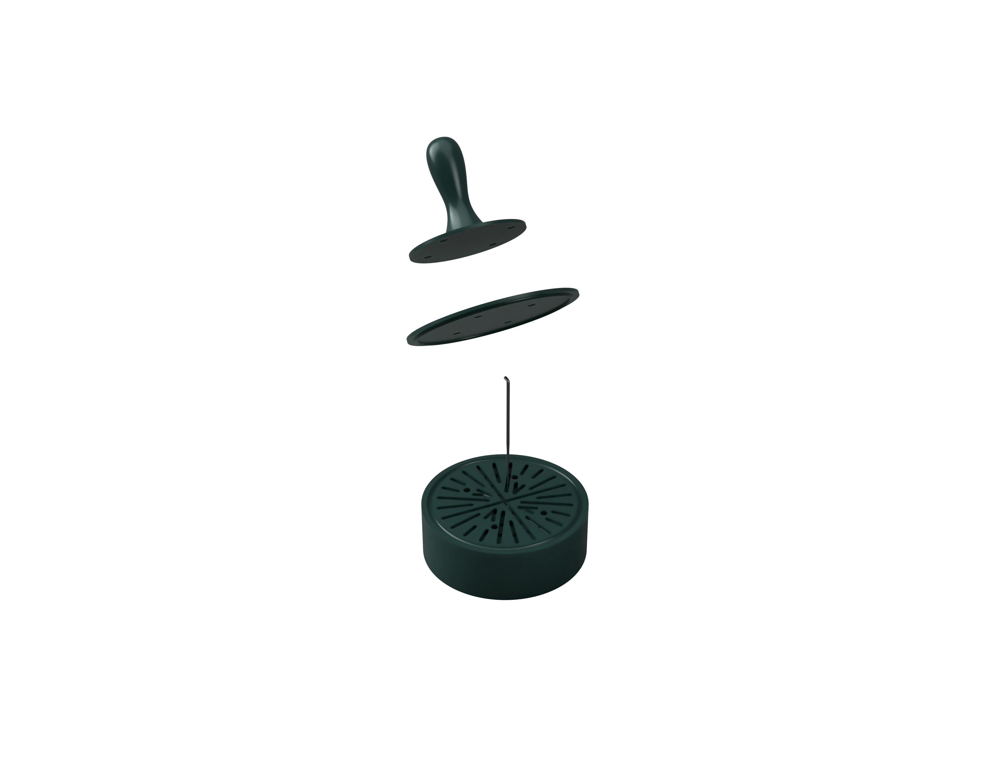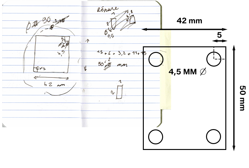 Based on Annabel’s part, we agreed that the needle holder would be attached using four holes, as shown in the plan below. Once the positions of these four holes were determined, I could design any shape I wanted, and I chose a circular form, almost like enlarging the traditional tool.