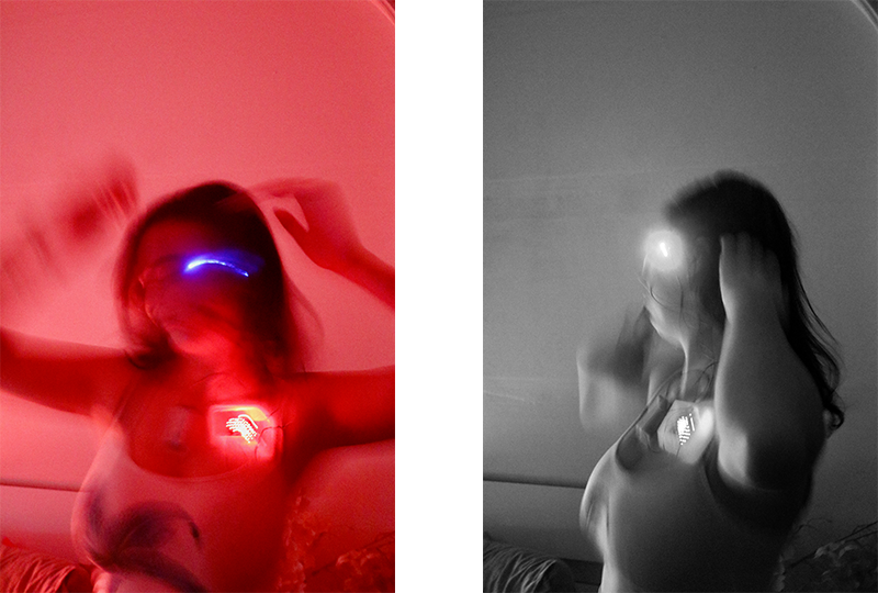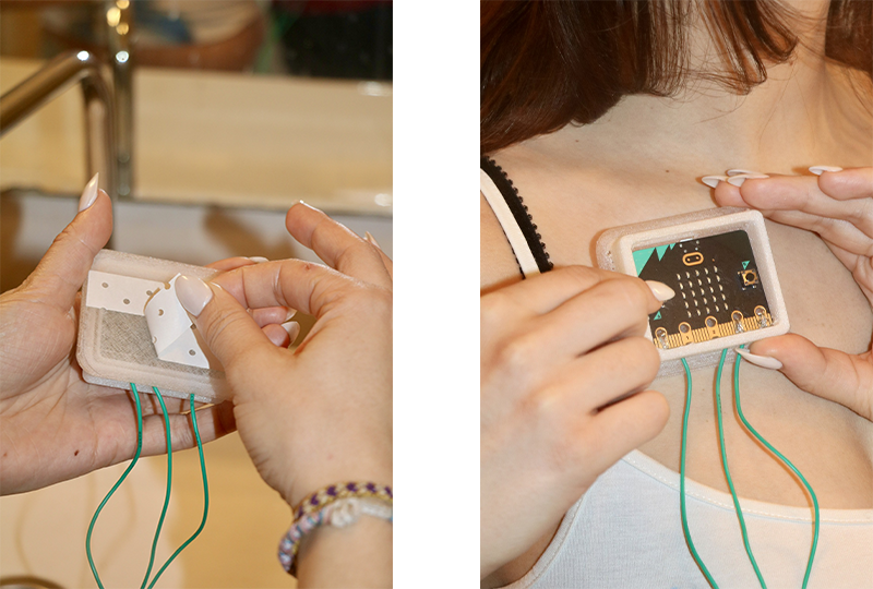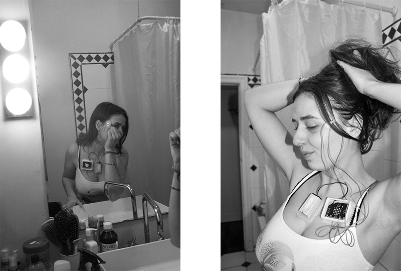Once I had chosen my support material, I began looking for a way to attach my electronic components to the skin without creating any risk. After several tests and some research, I wanted to recreate a “bandage-like” effect, so I decided to use double-sided wig tape, which is specifically designed for sensitive skin.