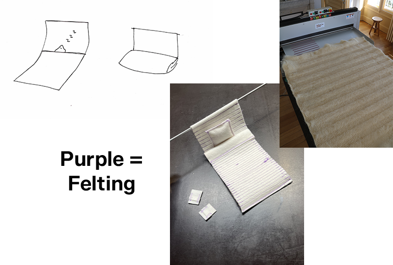 Through these hybrid objects—situated between textile, furniture, and architecture—the project questions our relationship with so-called “soft” materials in contemporary domestic spaces. Wool, often relegated to secondary uses, becomes here structure, surface, and shelter. The Wool House thus proposes an evolving living environment, attentive to daily rhythms, where textile matter dialogues with the body, light, and climate to imagine more sensitive, local, and sustainable ways of inhabiting space.