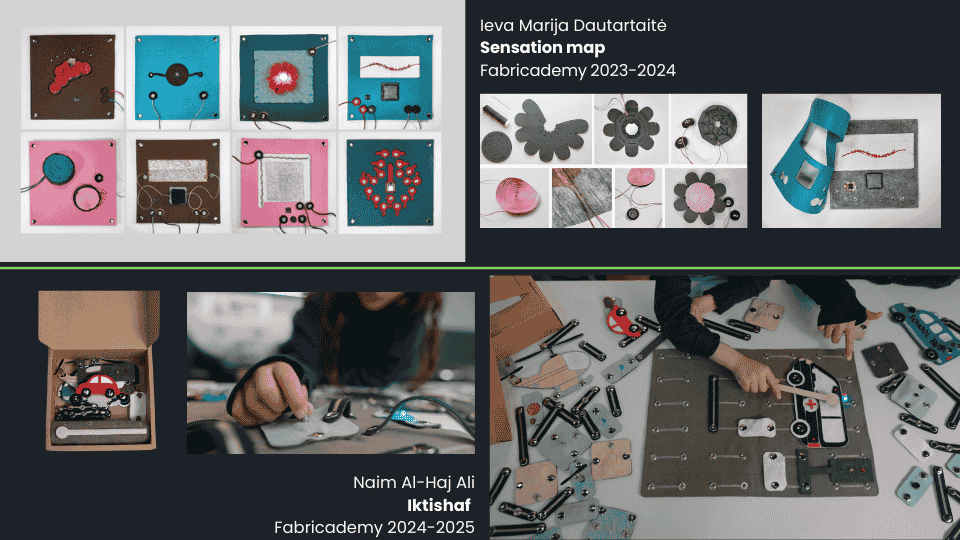 I also took as an example this two final projects of previous years. These projects aim to simplify learning about electronics, making it user-friendly and easy to understand for all ages. Both projects built upon the foundations of e-textile and developed various elements to facilitate connections, component changes, and other related tasks.