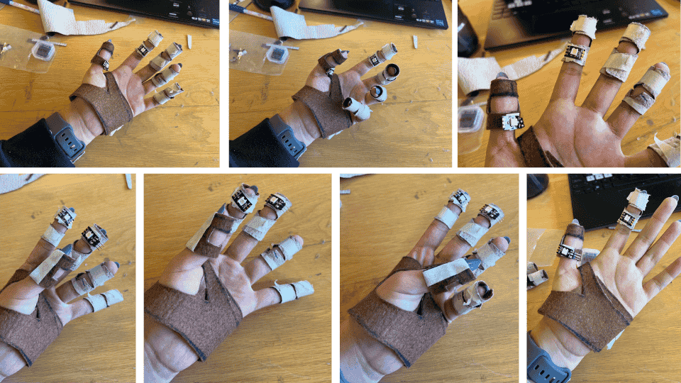 I was exploring the idea of making this wearable by parts, so that it can “build up” on the hands; and so here's some ideas of how to have the sensors and neo pixels in the fingers.