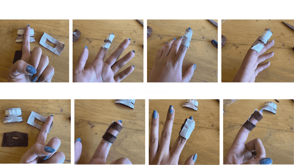 Then I moved to making different designs for the fingers, to check comfort, functionality and how practical they would be considering I'm planning them to be at least little bit adjustable using Velcro, and that way it will be a little bit easier to put them on.