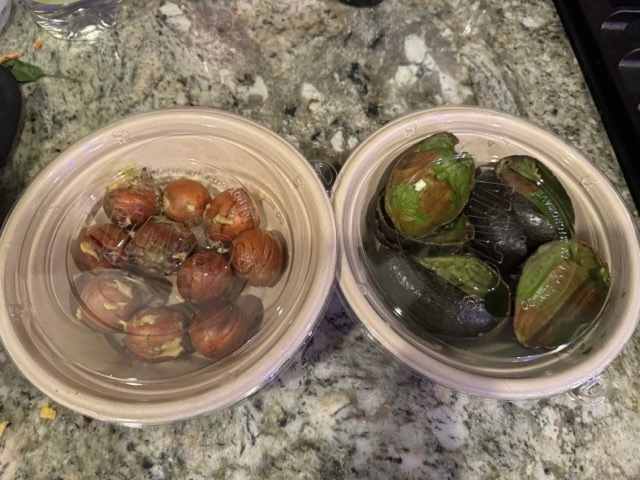 I used avocado (skins and pits) and black bean. Prepare this recipe [^1] by collecting the ingredients necessary, to be found in the list below:
