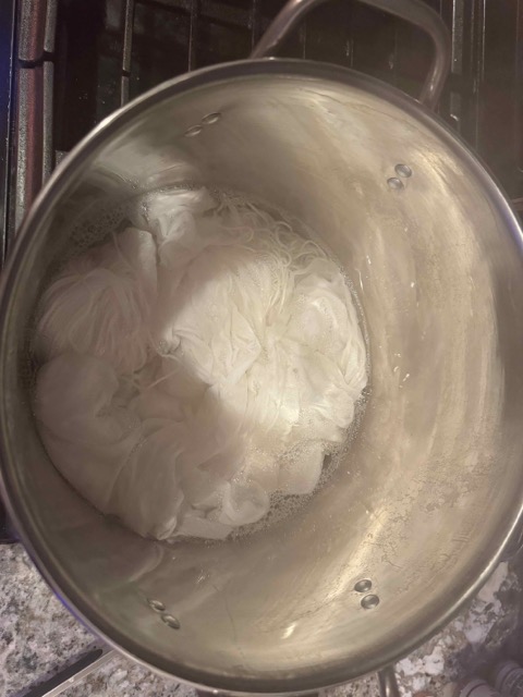 For this experiment, I only scour the cotton fabric and cotton yarn.