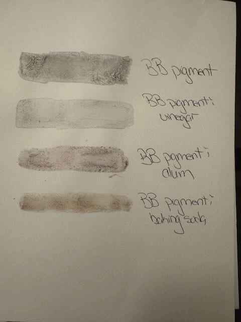 I used 60% of the weight of the dye with alum. The alum was stirred in and the solution emulsified in the beaker with the coffee filter on top. It took about 3 days for pigment to dry.