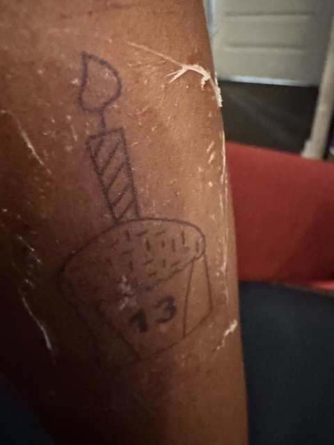 The sketches explore early visual concepts for a skin electronic tattoo that blends personal symbolism with wearable technology. The first drawing is for my youngest daughter, Navy, who is turning 13 years old in February. She loves cupcakes thus featuring a stylized birthday cupcake marked with the number 13. The cupcake form provides a contained, graphic shape that could function as a platform for embedding thin electronic traces within a temporary tattoo surface.