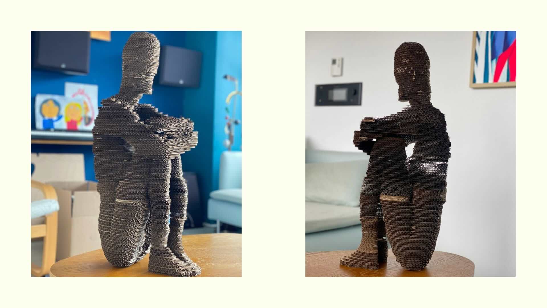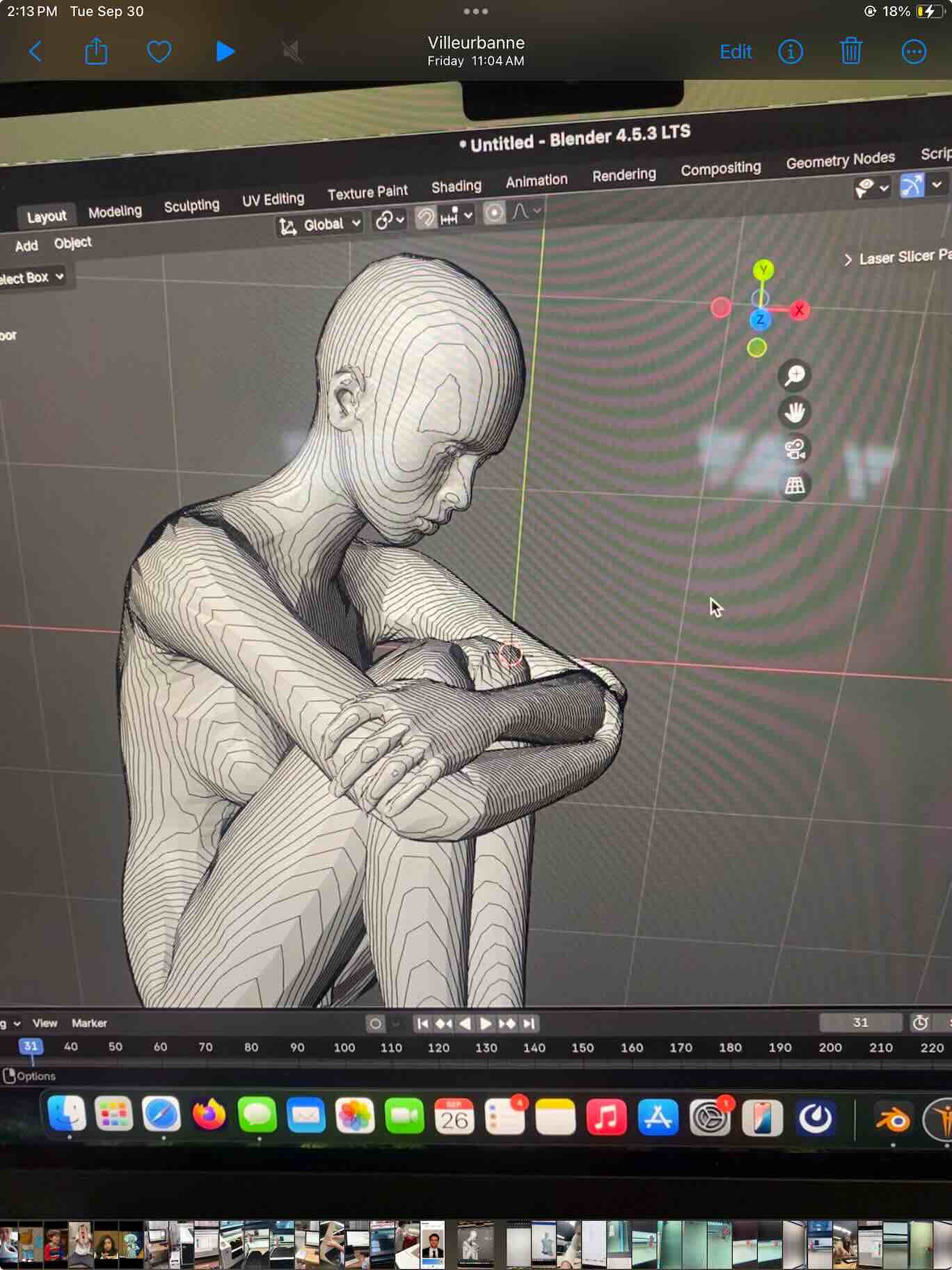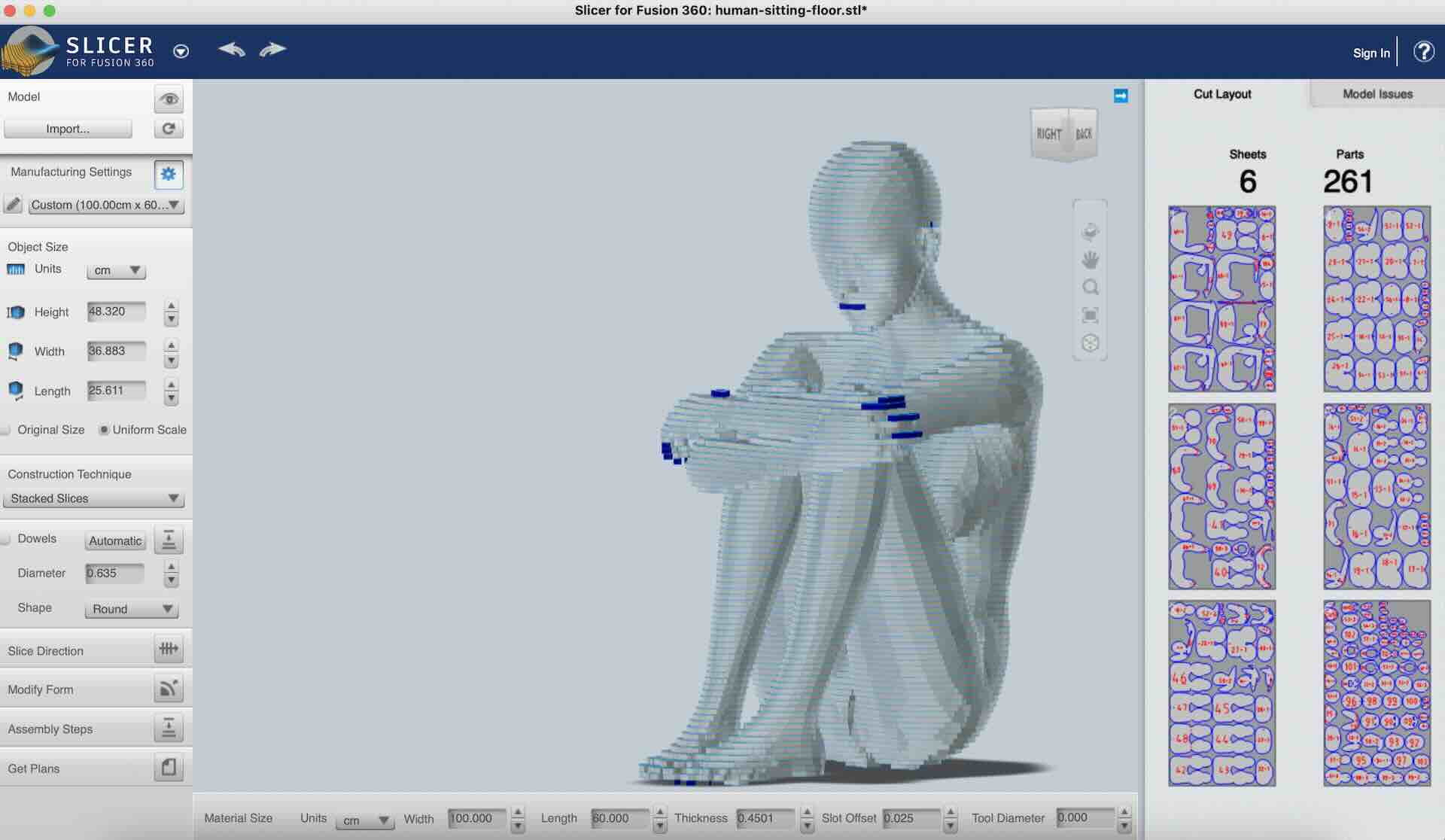 Sitting down pose in Blender using slicer add-on: I did this on Blender but since I had over 200 slices, it would take forever to number them and get a layout for cutting.