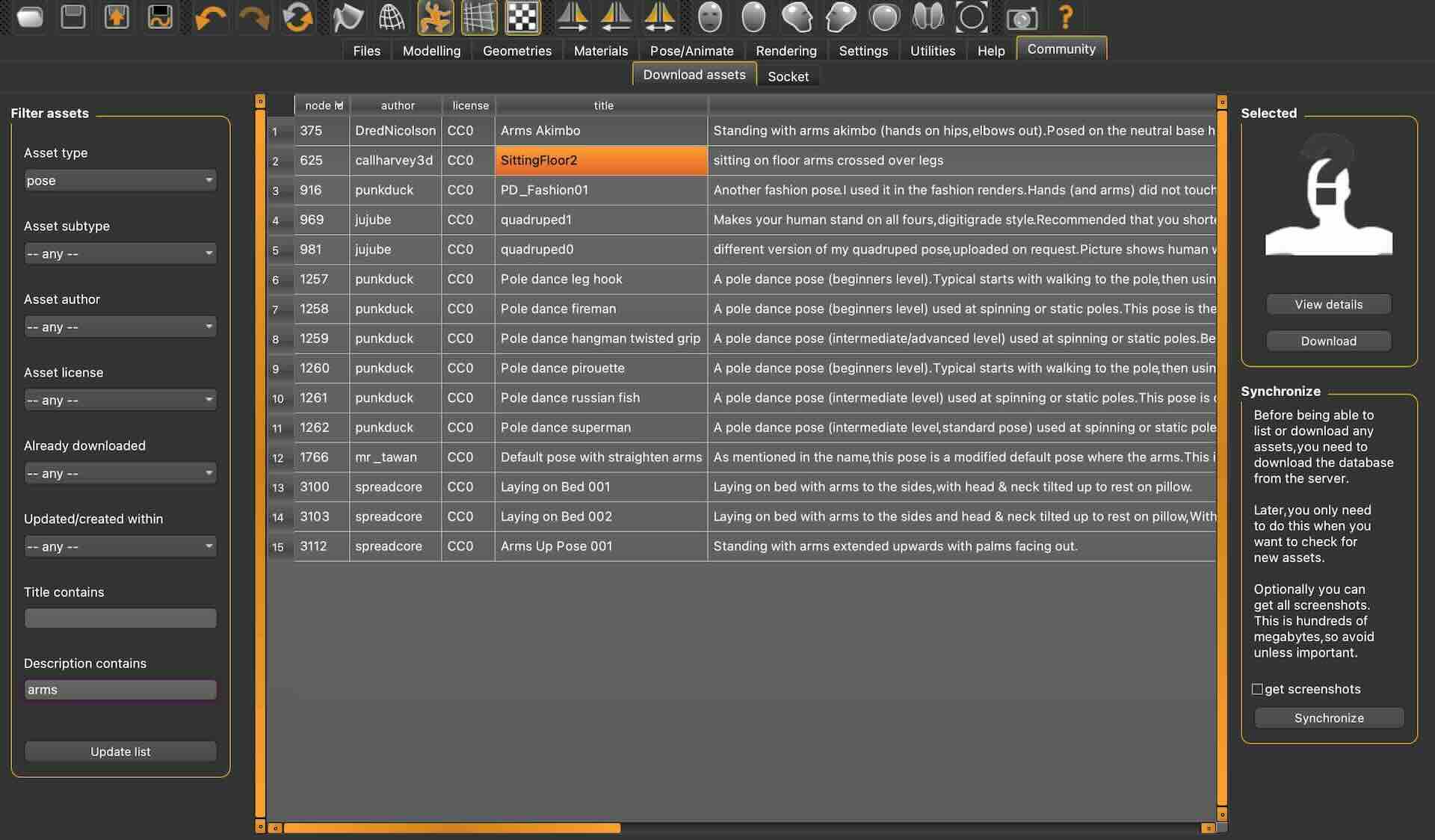My initial idea was to have a torso with crossed arms, so I started with MakeHuman to get a 3D model. I quickly realized that the poses there were not going to work for what I needed so I decided to download poses from the community.