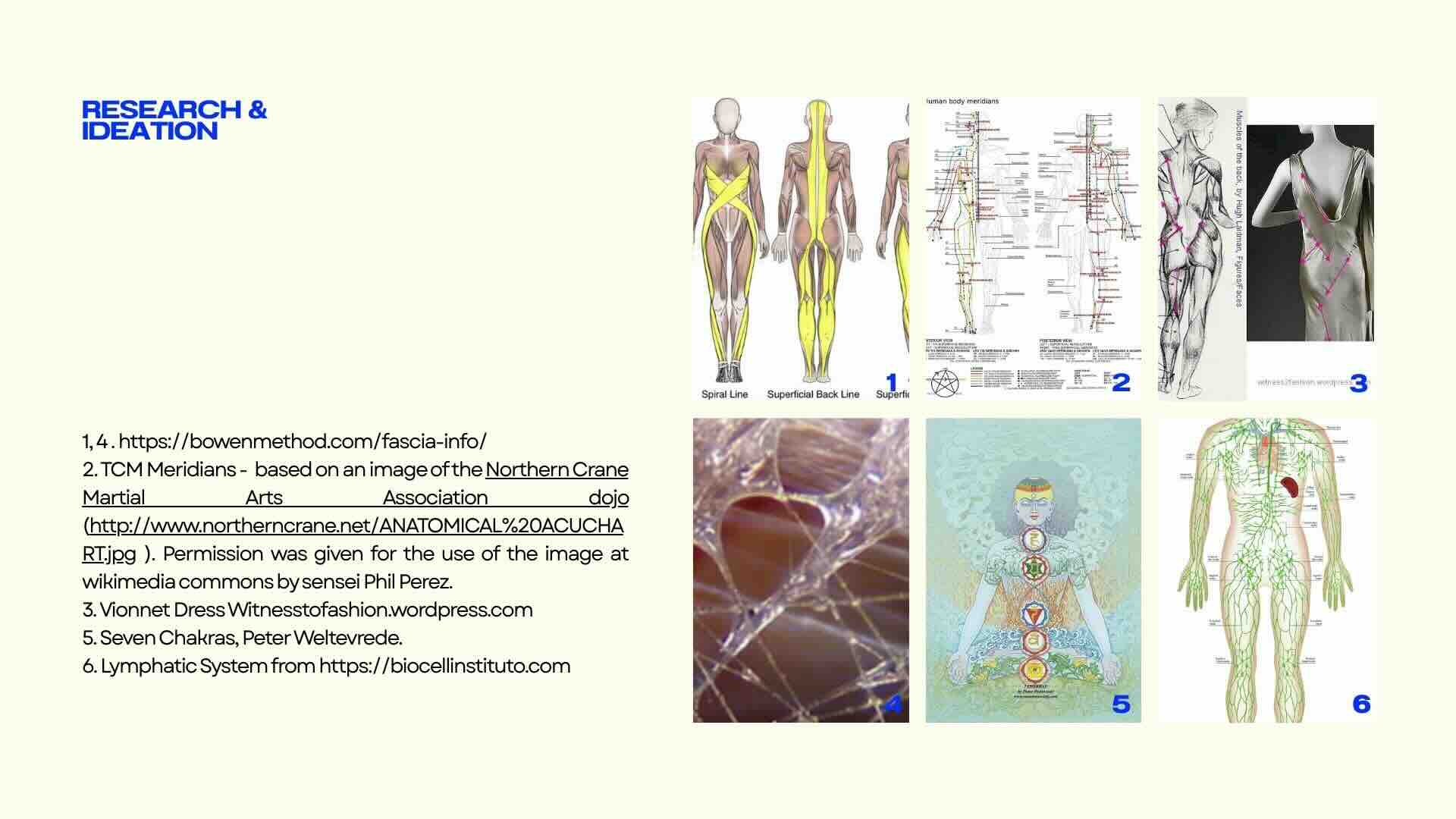 In more anatomical/medical view, I wanted to think on what is not usually visible or represented. We know about bones, muscles and organs but what about other systems that exist? I included the Vionnet dress that has cuts and stitches following the muscles lines of the body, the body meridians according to traditional Chinese medicine and fascia system of the body.
