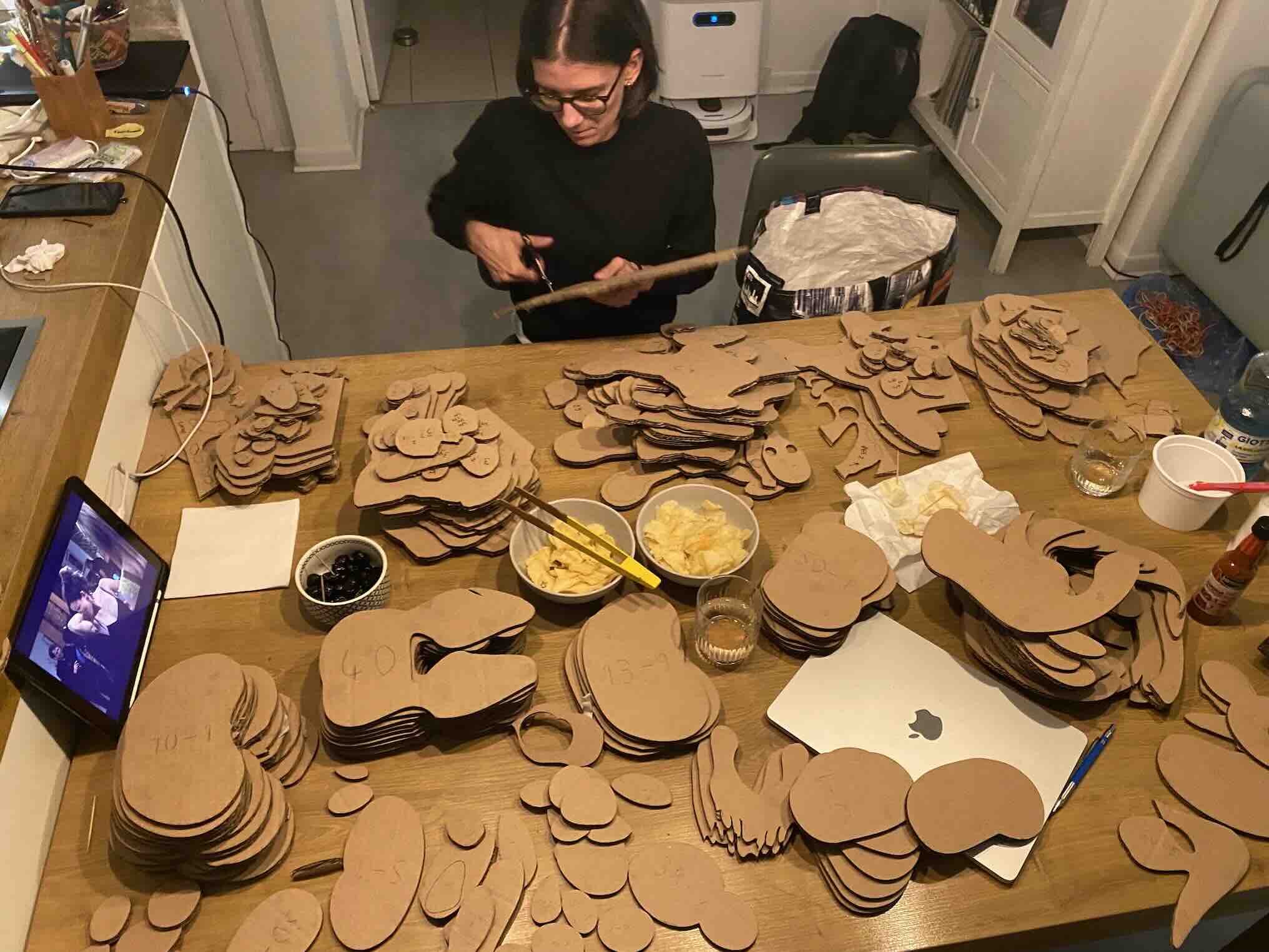 Before cutting, our instructor Capucine helped us with simplifying the files so that we had less points in the .svg file and we could reduce the cutting time. In the meantime, I got to cutting the cardboards to fit the cutting machine since they are a bit bigger.