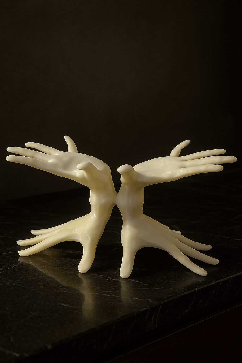 My project for Digital Bodies Week will be display stands or décor, designed in the form of human hands in contemporary abstraction. The idea is based on the relationship between the body, design, and function, transforming the hand (the primary human tool for interacting with the world) into a functional object for installation and display.