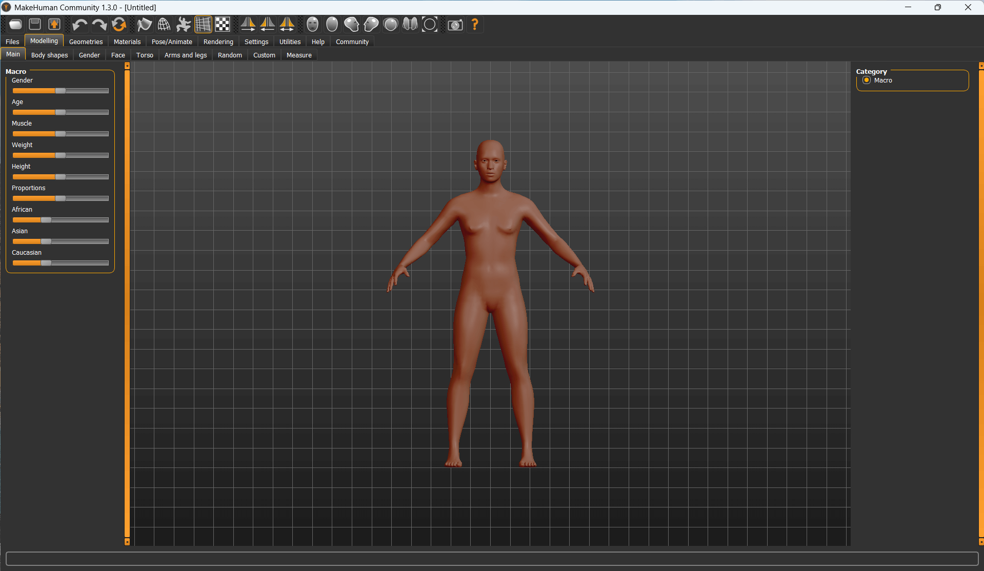 MAKEHUMAN I downloaded the MakeHuman program and started exploring it and learning how to work with it. The program is important because there are many properties that can be changed on objects to benefit from them in designs.