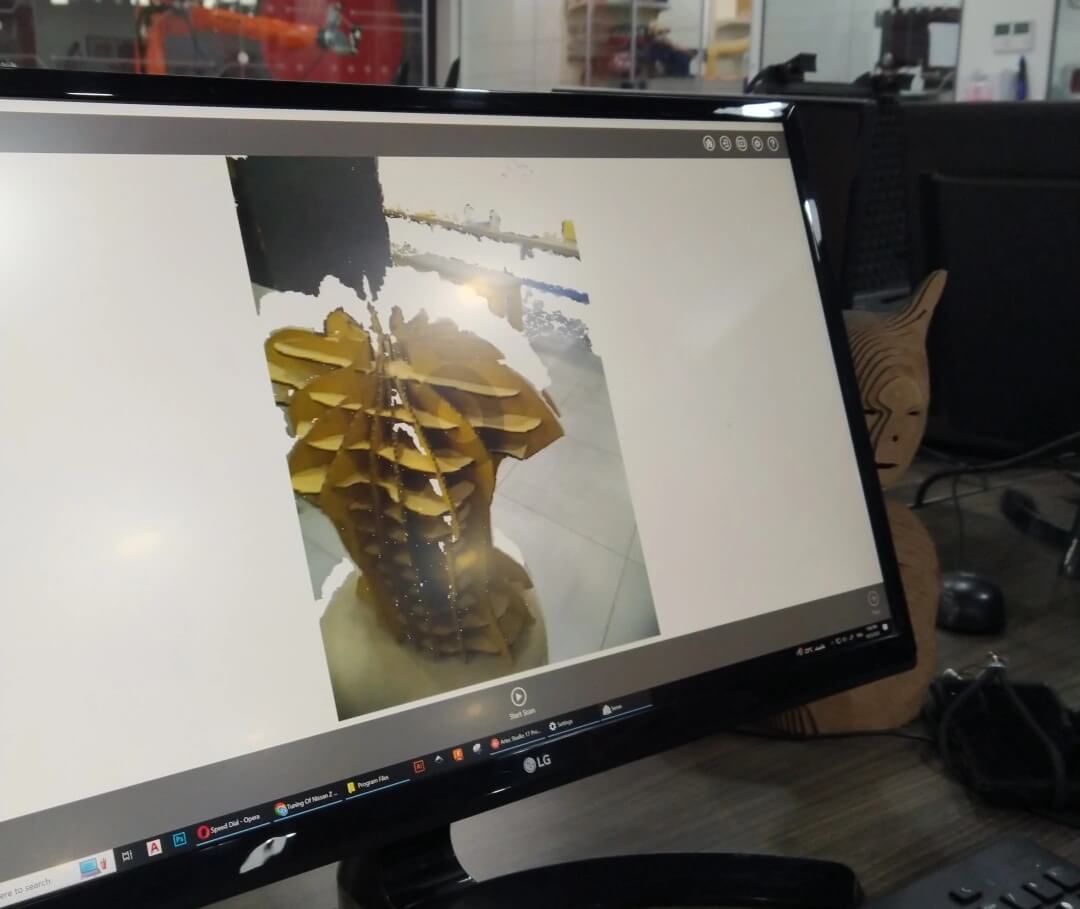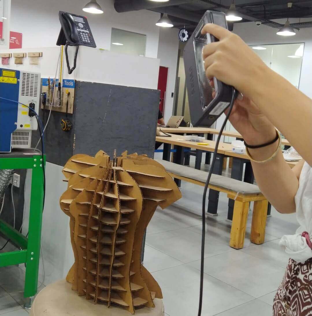 We open the software on the computer and experience of seeing the object through the scanner, and Determine the appropriate scanning distance and angel.
