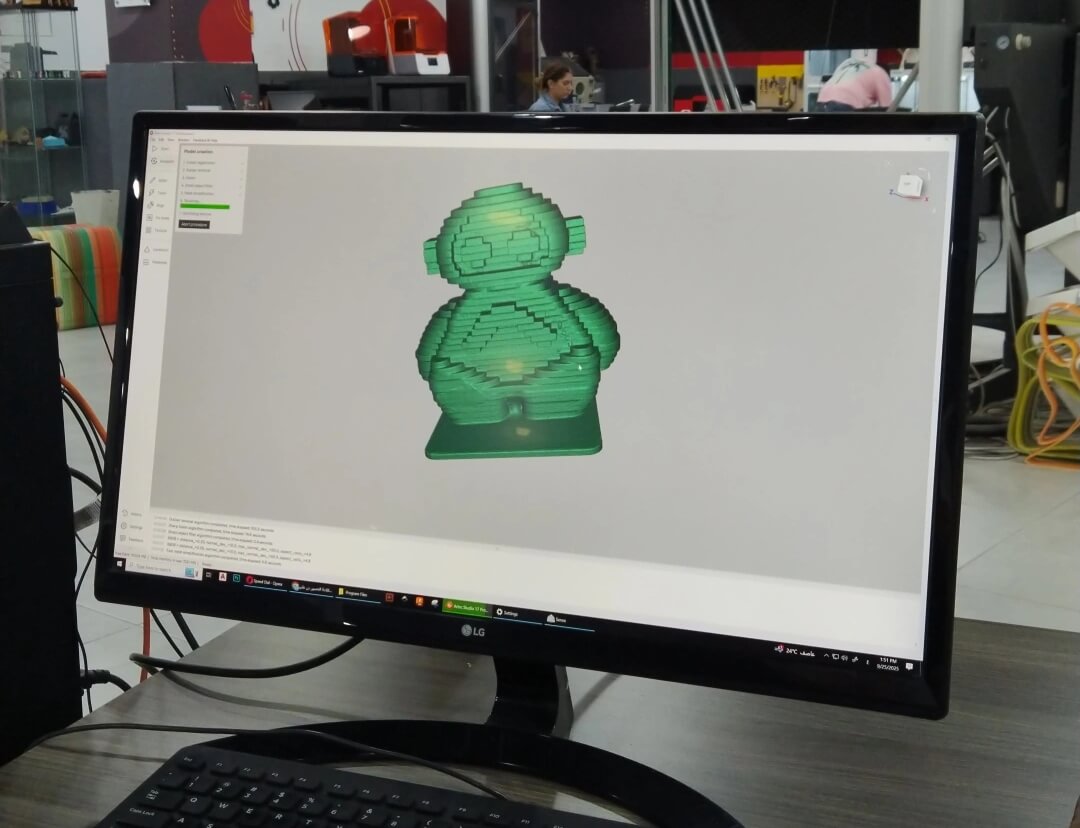 Slicing the Model In this stage, Cura software is used to convert the digital model into an instruction file called G-code, which the 3D printer can understand. The software divides the model into thin layers and determines how the printer will move, the amount of material output, temperature, speed, and other settings.