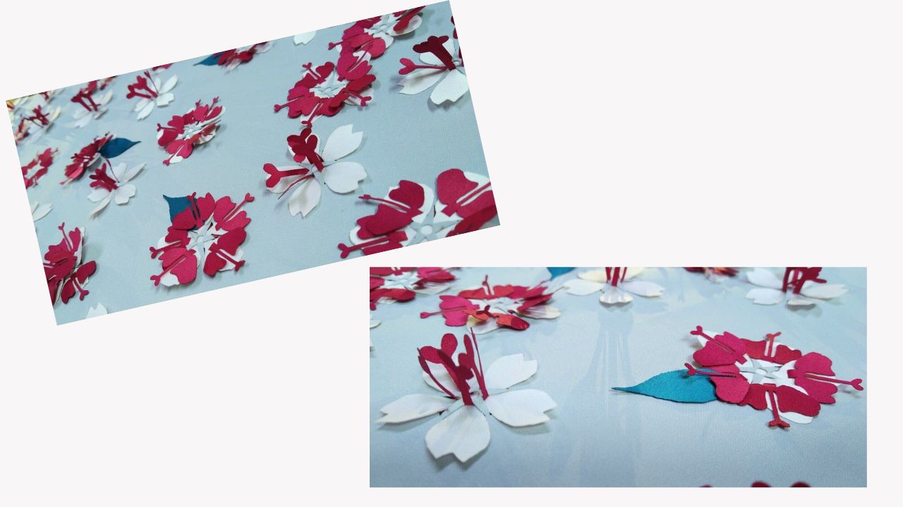 From this perspective, I began to view fabric scraps and woven waste as new “local flowers” that can grow from our existing resources rather than importing new materials. The goal is to create beauty and value from discarded materials, just as wild cherry trees thrive.