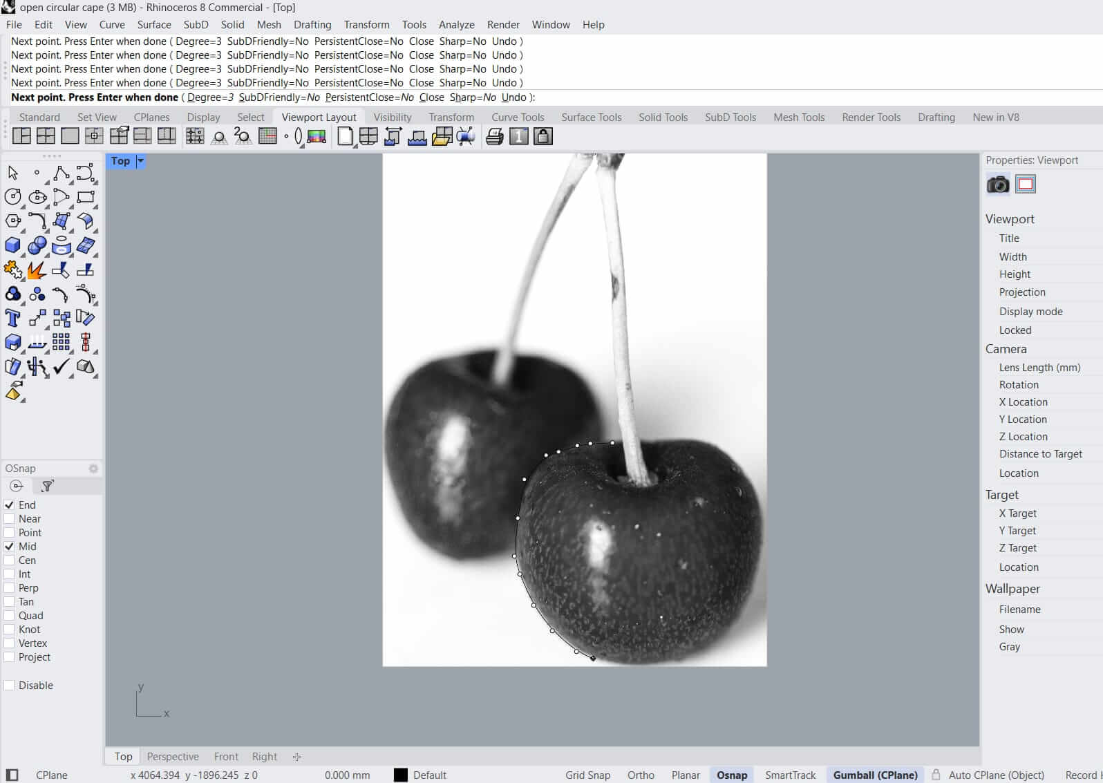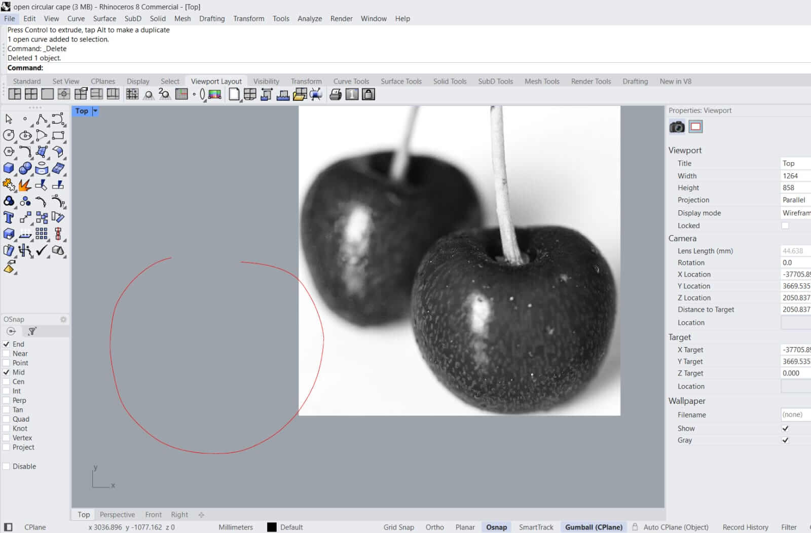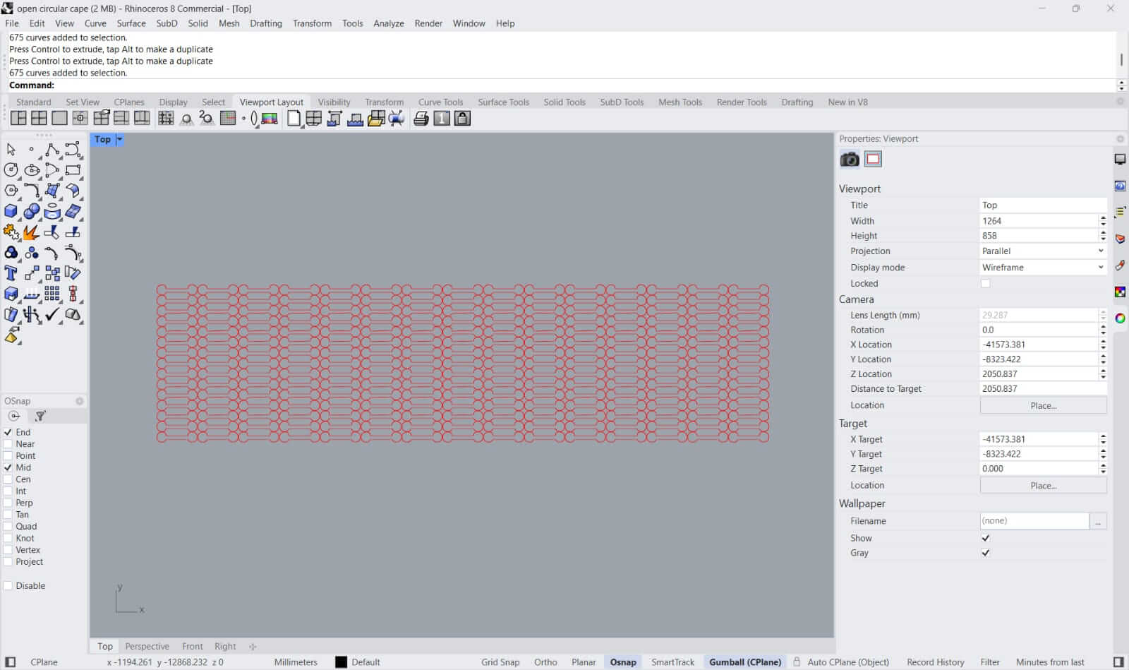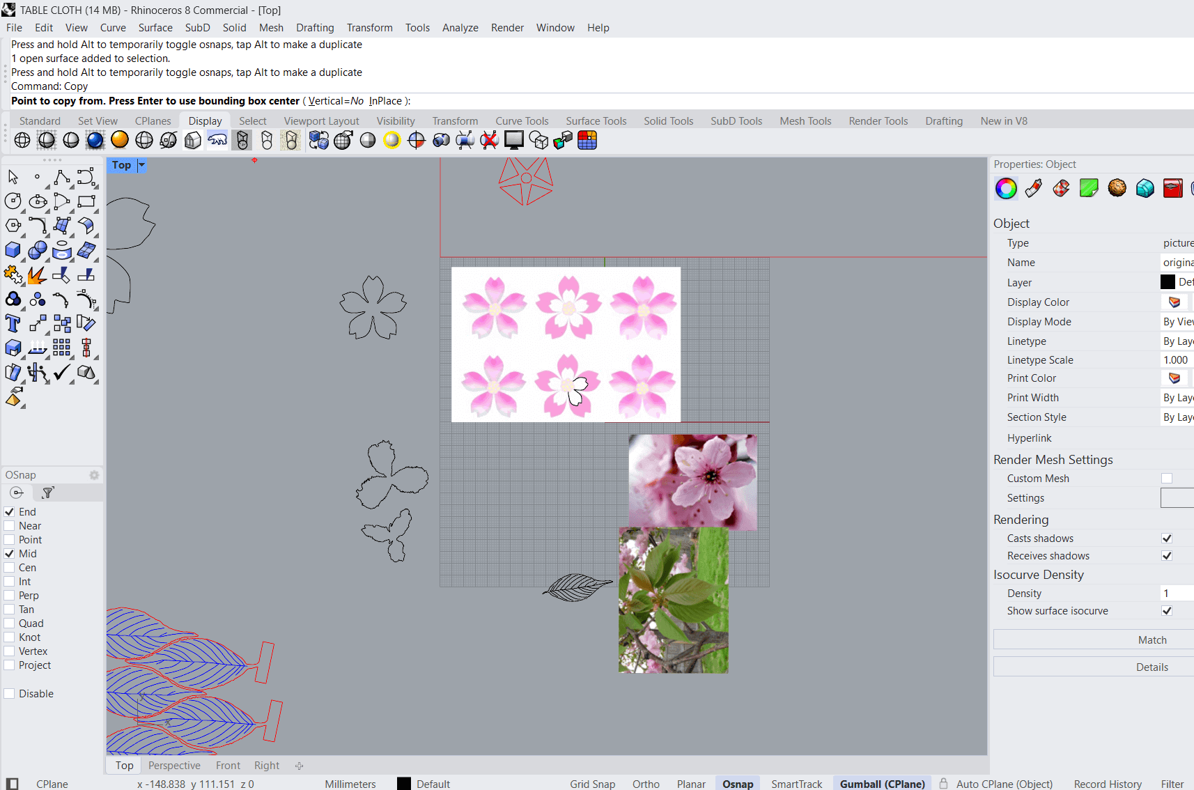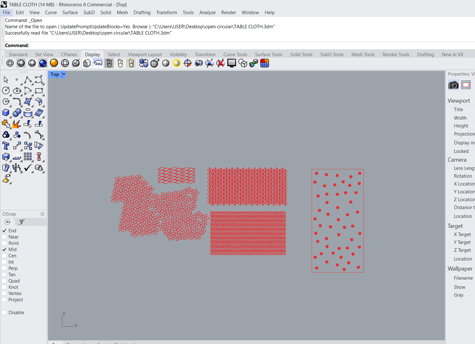 I started this design with drawing thae table cloth itself usinhg RHINO, then I draw the spaces for the flowers interlocks.
