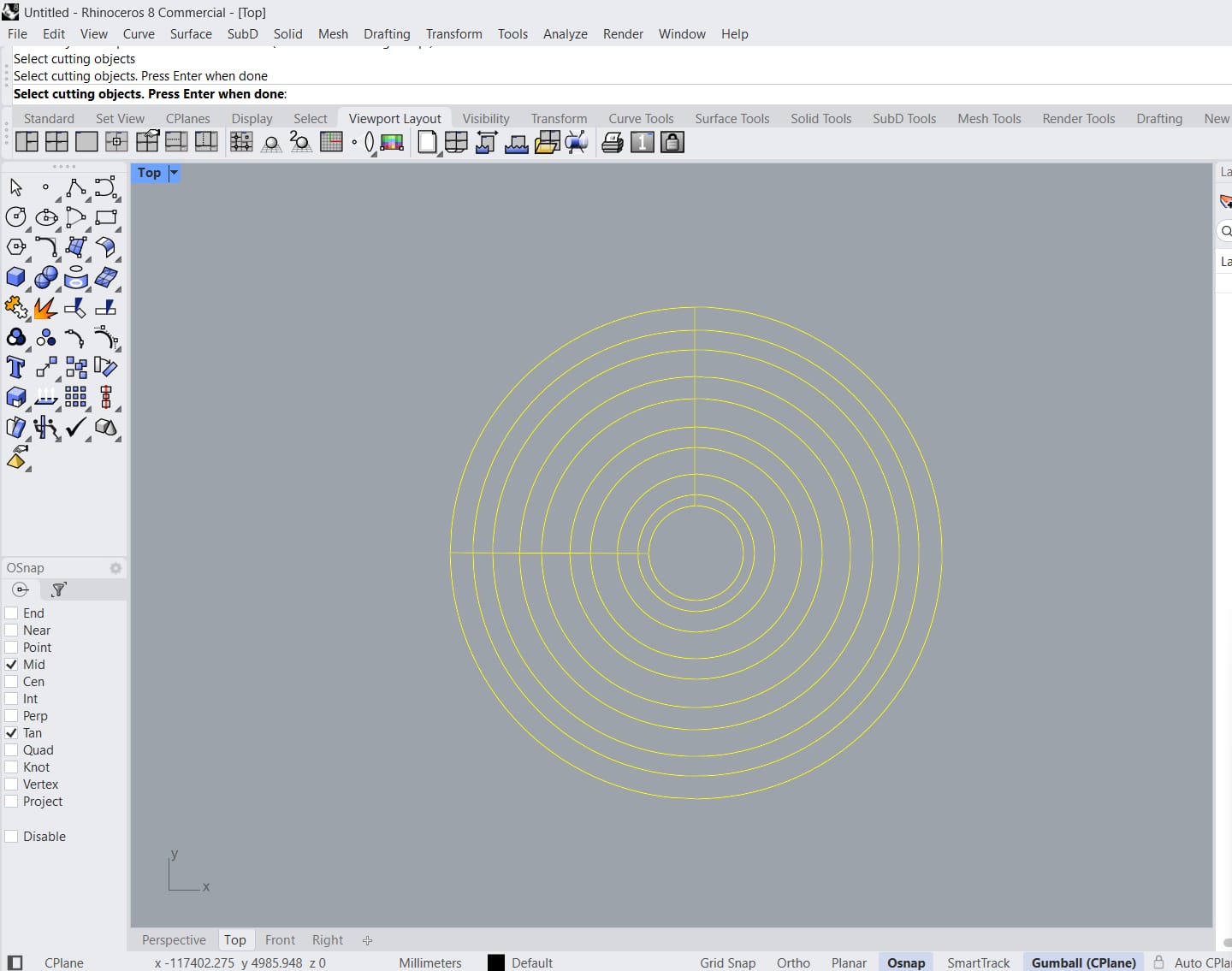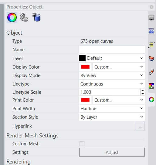 The last thing before moving on to cutting, I checked the cutting settings on the Rhino software, such as the line color being red and the line width being hairline.