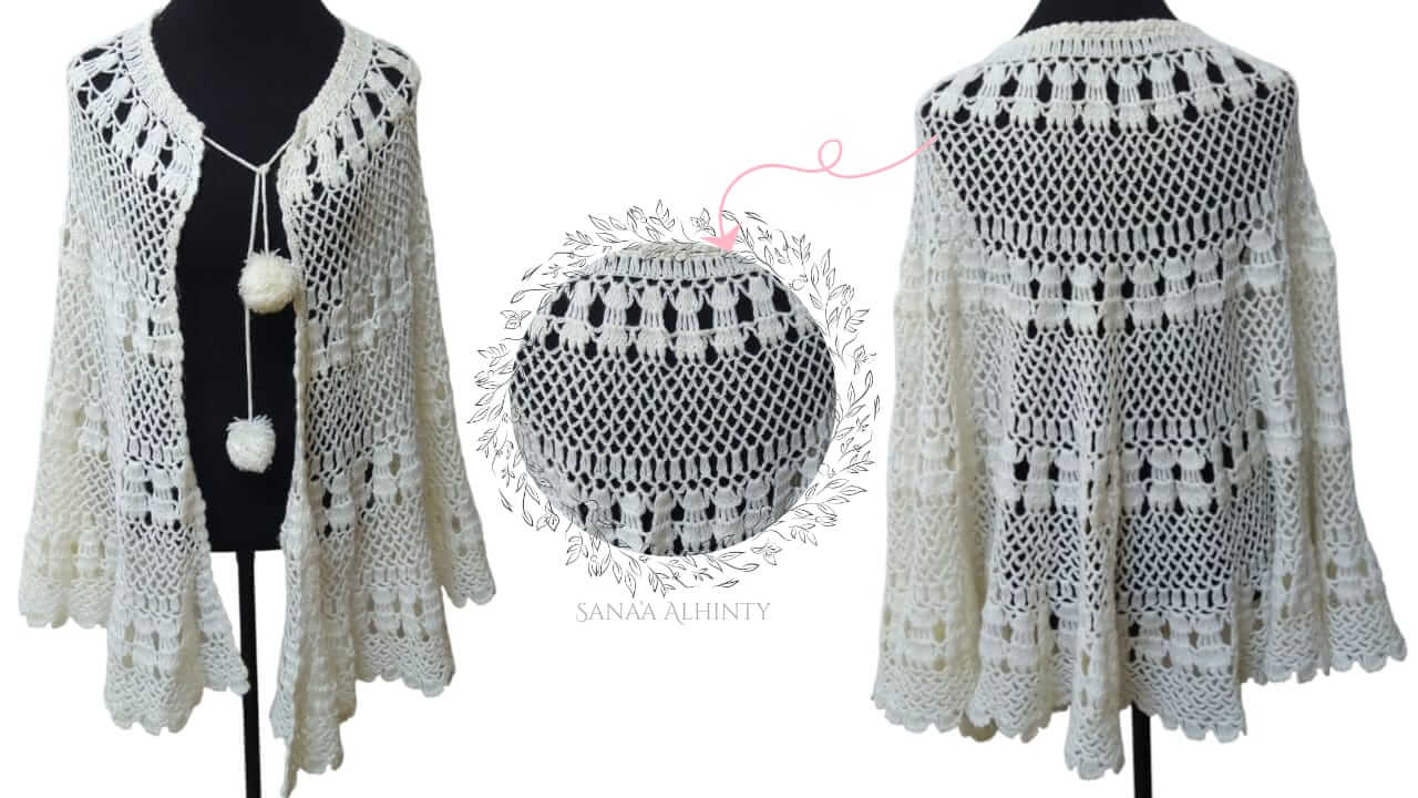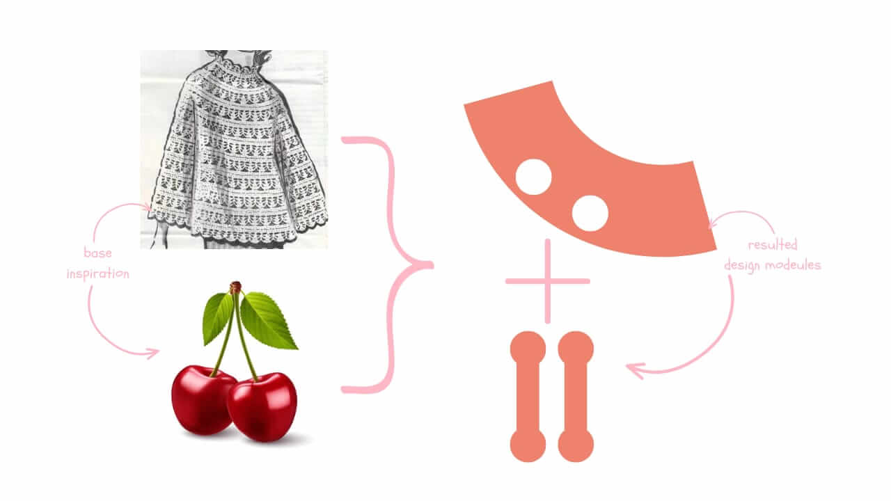 Those warm memories inspired the idea for this week's first design, combining the delicate symmetry of cherries with the aesthetics of hand-crocheted shawls. This combination resulted in a cape with a unique design that combines nostalgia, craftsmanship, and contemporary creativity.