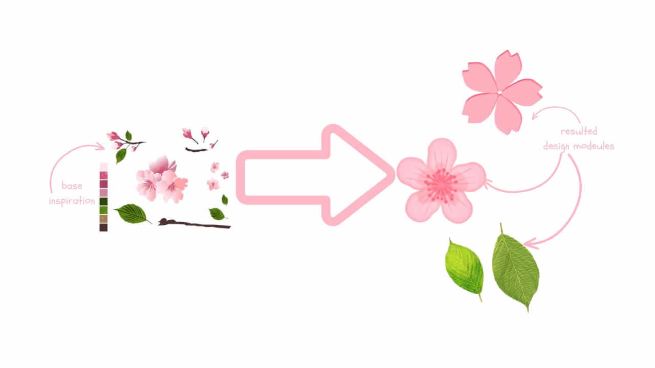 The beauty of cherry blossoms is not limited to their soft shape and vibrant pink color, but also to the sense of calm and serenity they evoke. Therefore, the inspiration for this design was inspired by them as an expression of a desire to bring this natural beauty into everyday life, through a piece that adds warmth, softness, and a touch of tranquility to the living room.