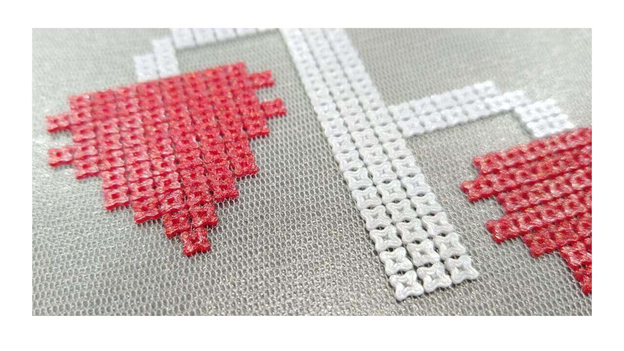 Curved cross pattern printed on fabric using PLA filament on PRUSA printer