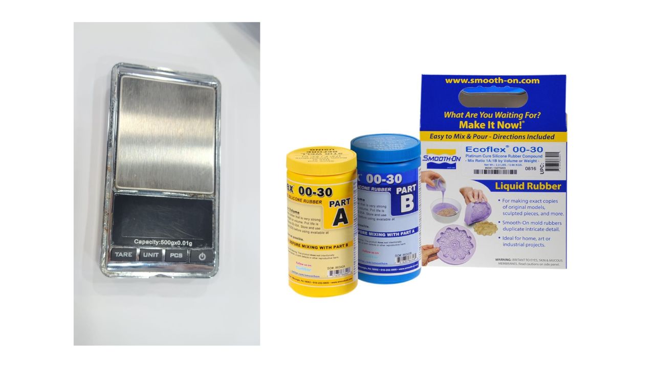 After I prepared the mold I started to prepare the Ecoflix silicone by weighing 15 g of material A and 15 g of material B for this mold.