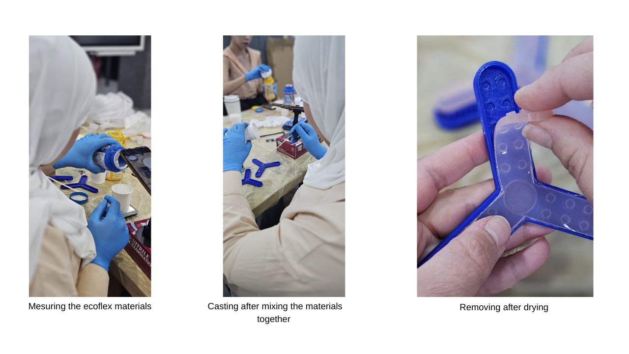 After drying we should glue both sides of the mold to gether to get the ful shape using the same steps of hte same silicone.