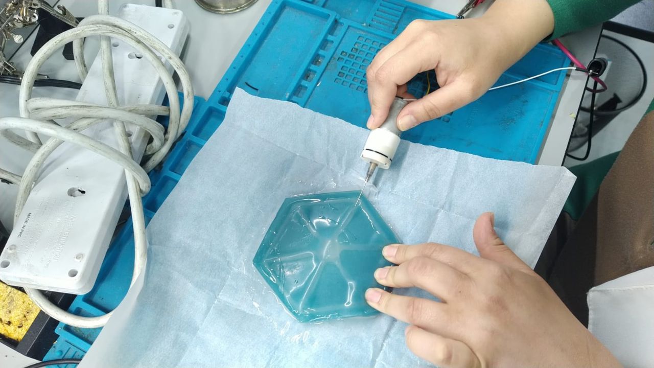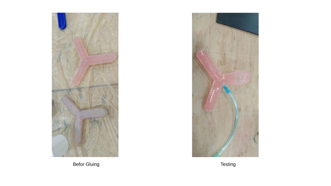 During this experiment, I explored the principle of self-inflating (inflatables) using a simple reaction between sodium bicarbonate and vinegar. I made a flexible, inflatable plastic bag and placed the two substances inside. As the reaction began, carbon dioxide gas started to expand within the structure, creating a gradual inflation motion similar to breathing. This experiment allowed me to understand how chemical reactions can be used to produce movement in soft robots. I also observed that controlling the shape and speed of the inflation depends directly on the amount of materials used and the design of the mold.