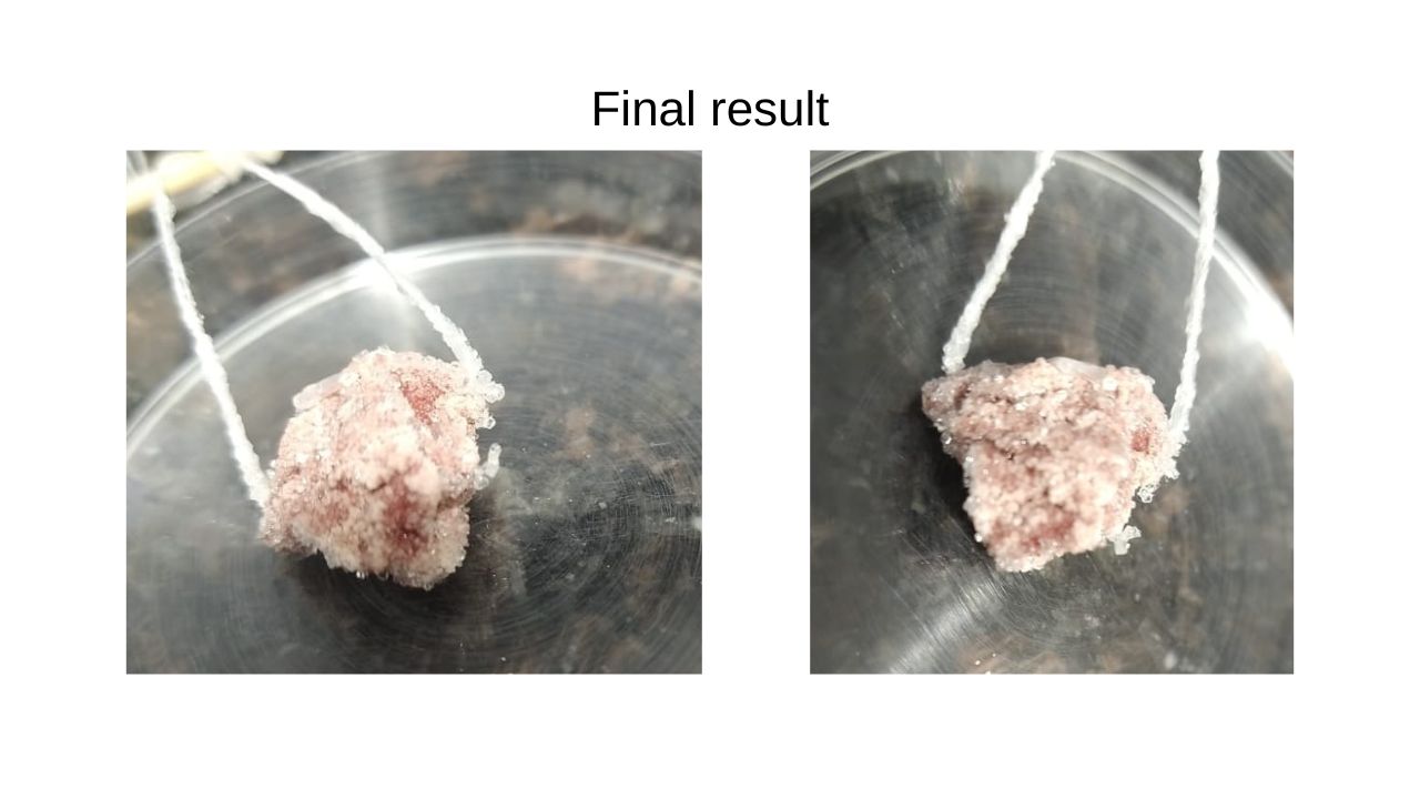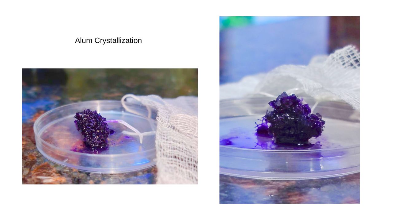 My second experiment was ALUM CRYSTALLIZATION in red cabbage dye bath. I used the leftover dyebath from the biochrome & biofabrication week. It was 60ml of the dye bath so I dissolved 24G of Alum.