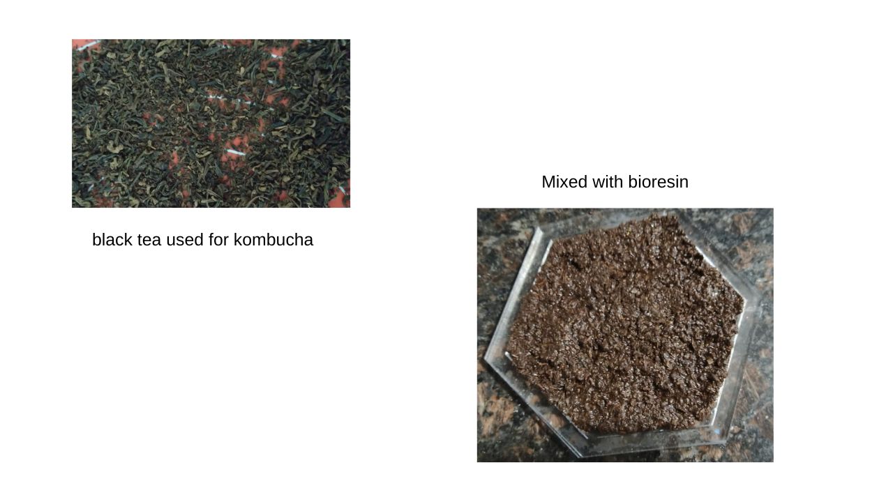 THIRD COMPOSITE: BLACK TEA WITH BIORESIN After preparing black tea for the kombucha, I kept all the leftovers and dried it and mixed it with bio resin.