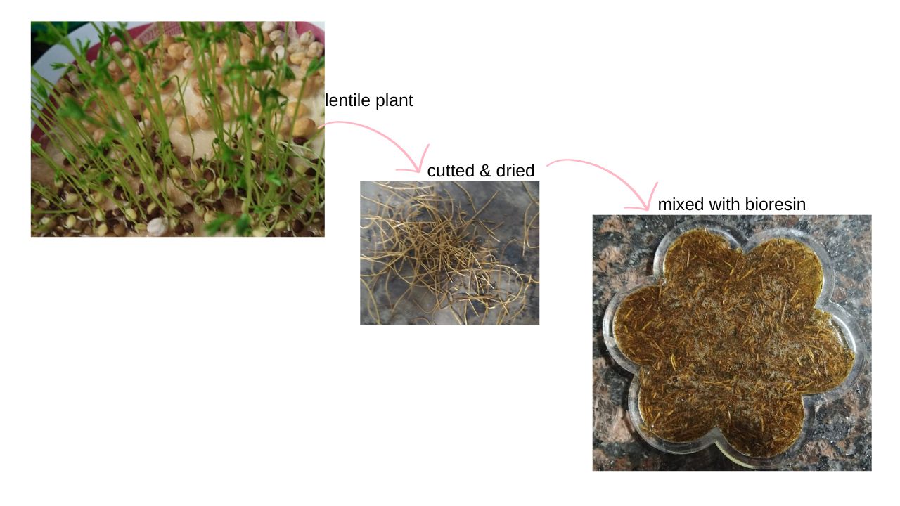SECOND COMPOSITE: LENTIL PLANTS WITH BIORESIN After lentil planting I cutted the plants and dried it and mixed it with bioresin.
