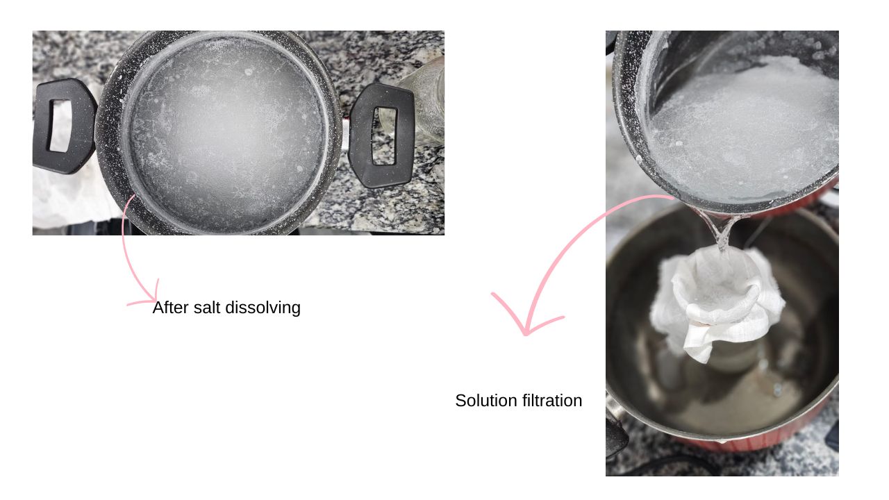 I started experimentation with SALT CRYSTALLIZATION I dissolved about 400 gram of salt in one liter of water while heating until the salt stop dissolving.
