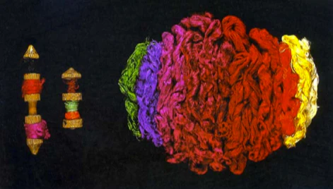 The most popular dye color was red with different shades prevailing in the various locales. The shade variance of each particular area provided additional distinction of expression.