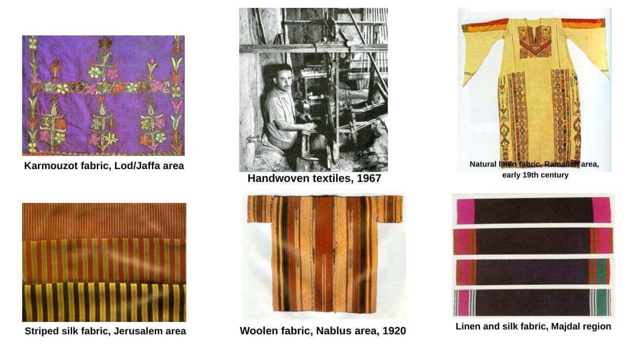 Traditionally the embroidery was executed on local, hand-woven linen, a linen-cotton blend, or on cotton loosely woven to facilitate the counting of threads. The fabrics were woven in the Majdal-Gaza Area, Ramallah, Nazareth, Hebron, and Nablus.