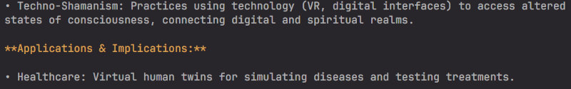 - Change the text to bold: Writing the text between two asterisks from each side, converts the text to bold like in the example, in which Applications and Implications appears in bold.