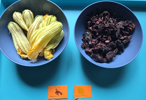 Yellows & Oranges: Turmeric, onion skins, pomegranate rinds, weld