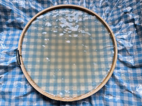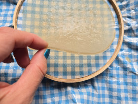 * Prepare the casting surface(the embroidery hoop with the fabric).