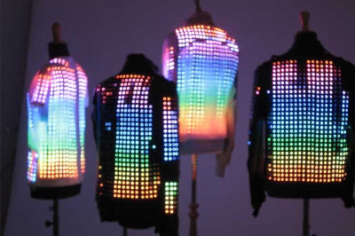 Wearable fashion technologies also provide key precedents. CuteCircuit’s HugShirt—one of the earliest haptic garments—demonstrates the potential of textiles to communicate touch over distance, while their Mood Sweater uses LEDs to visualize emotional states through color.
