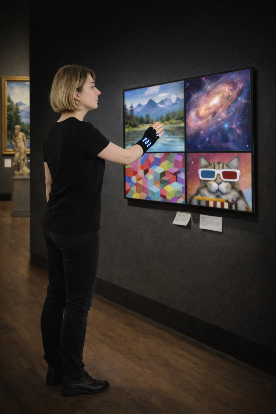 The project takes form as an interactive wearable bracelet within installations for galleries, museums, festivals, and art-and-technology contexts. A complementary glove version is designed for intimate, personal use.