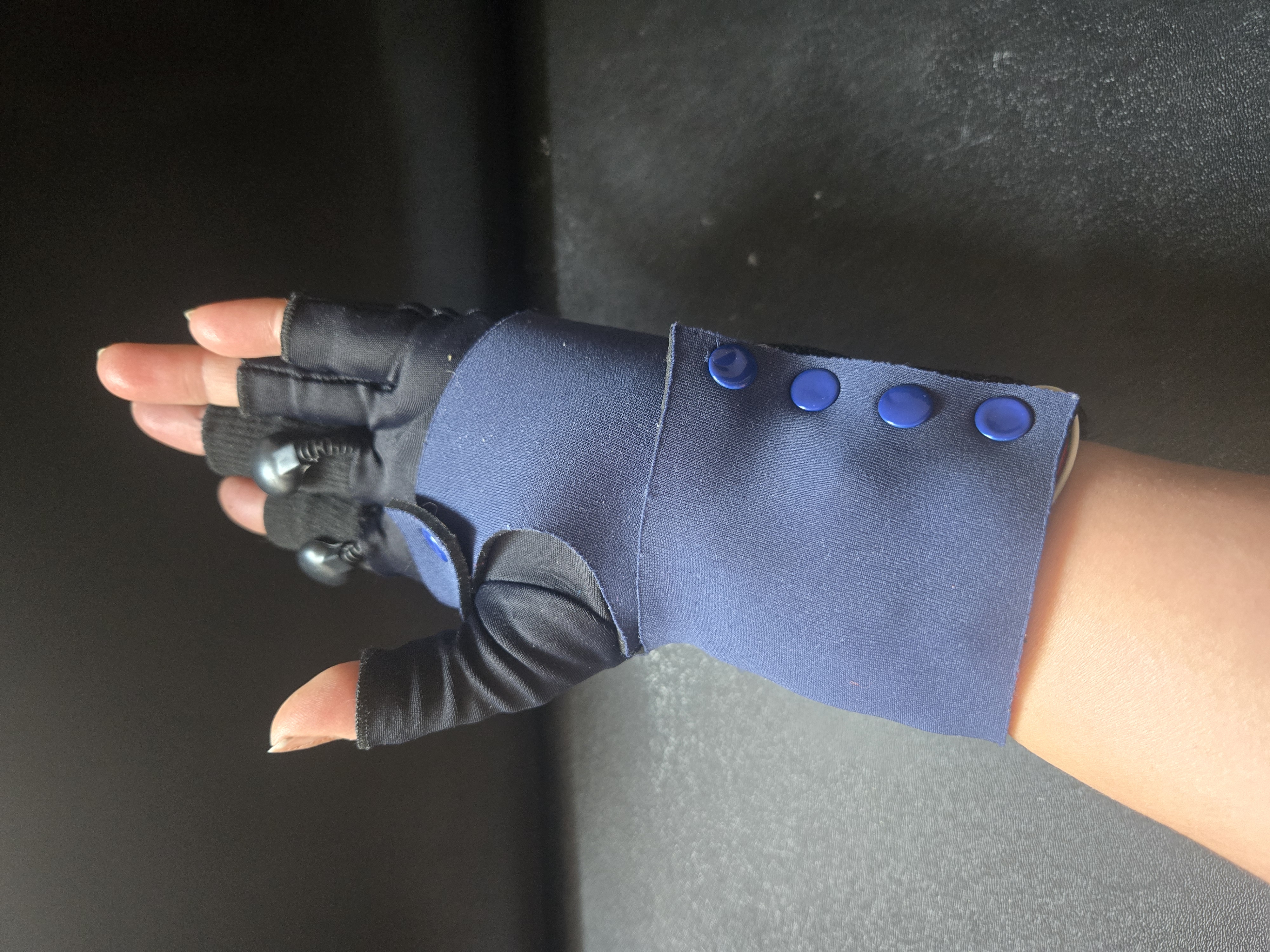 The electrodes will be connected to the index and middle fingers.